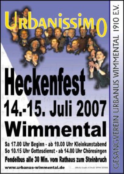 Seit sechs Jahren gibt es zum Auftakt des Heckenfestes den Kleinkunstabend. Gewächse aus den eigenen Reihen zeigen ihre Talente, Talente aus der Umgebung kommen dazu. Stefan Reiter macht hier Stimmung mit seinem musikalischen Repertoire am Keyboard von Elvis bis zur Polka. Wolfgang Fetzer und Carmen Ackermann zeigen in einem Sketch, zu welcher modischen Wandlungsfähigkeit eine männliche Reizwäsche fähig ist. Fritz-Peter Ostertag und Rainer Körner an der Gitarre lassen das Publikum in Oldie-Nummern schwelgen. Die „Young Generation“ vom Urbanus Wimmental huldigen berühmten Pop-Balladen. Musik für eine laue Sommernacht.