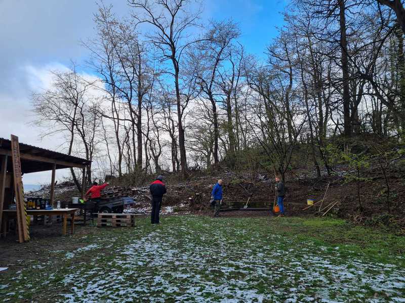 Schon seit Monaten war der Termin für die Hüttenputz Party durch den Beirat festgelegt und an alle aktiven Sängerinnen und Sänger bekannt gemacht, so dass viele Chormitglieder dabei sein und mit vielen Händen den Erfolg der Aktion sicherstellen konnten. Der Termin kam dann deutlich schneller als der warme Frühling und so versammelten sich schon morgens um 8 Uhr die Eifrigen an der Urbanushütte, die nach Frost und vorangegangenem Schneefall ein leichtes weißes Winterkleid trug. Hüttenwart Robin Müller hatte im Vorfeld mit Unterstützung seiner Mutter Jutta alle notwendigen Tätigkeiten aufgelistet, beplant und die dafür notwendigen Hilfsmittel wie Farbe und Lasuren besorgt. Arno und Martina Gerok hatten bereits einige Tage zuvor einen Wassertank zur Urbanushütte hochgefahren und diese von außen komplett mit dem Dampfstrahler gesäubert. Eine perfekte Basis, um die Hütte nach 15 Jahre wieder komplett mit Holzschutzfarbe zu streichen. Es wurde innen und außen alles auf Vordermann gebracht, zuerst entstaubt, dann gereinigt und schließlich neu gestrichen. Der Sperrmüll wurde in Eberstadt auf der Deponie entsorgt. Auch auf dem Außengelände fanden Verschönerungsarbeiten statt und zwei Mädels aus dem Jugendchor haben die Dachrinnen blitzblank ausgeputzt. In diesem Zuge wurde auch die 42 Jahre alte Treppenbeleuchtung durch moderne LED Leuchten ersetzt. Rosa, Sabine, Jutta und Martina haben ein köstliches Mittagessen mit gefüllten Weckle und leckerstem Kartoffelsalat zubereitet, so dass der Hunger gestillt und neue Kräfte mobilisiert werden konnten. Nach 8 Stunden waren alle Arbeiten erledigt. Eine wirklich tolle Gemeinschaftsleistung, wie wir es beim Gesangverein Urbanus Wimmental auch nicht anders kennen. Vielen Dank nochmal an alle die dabei waren und mitgeholfen haben. Hier noch ein paar Eindrücke in der Bildergalerie: