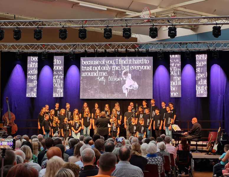Mit über 700 Zuhörern ist die Weinsberger Weibertreuhalle einmal mehr restlos ausverkauft, als die Chöre Urbanus Kids und Young Generation mit Chorleiterin Martina Gerok und der Chor Urbanissimo mit